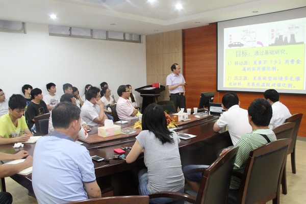 2015年7月7日下午,在东校区知达楼二楼研讨室,南京大学现代分析中心主任董林教授走进我室学术沙龙,为我室师生作题为《基于移动(固定)源中NO及CO催化消除的若干基础科学问题的研究》的学术报告。报告由实验室副主任张勤芳教授主持,相关老师及众多研究生参加了交流会。