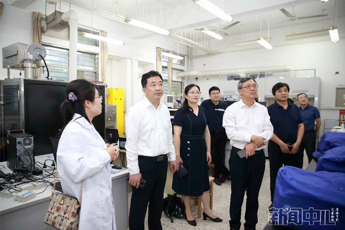 费坚副市长在校领导的陪同下,来我校省新型环保重点实验室实地考察,重点了解了工业固废资源化研究所、环境污染检测与控制研究所、微纳功能材料研究所的科研进展及成果转化情况。